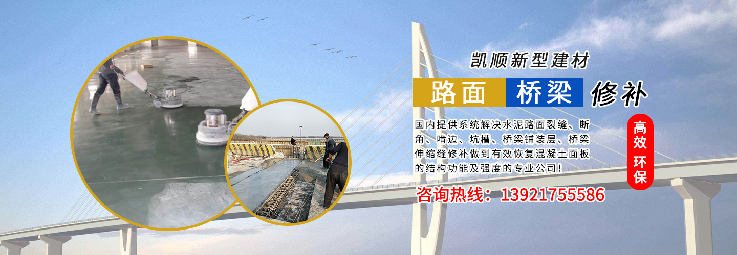 江蘇凱順新型建材有限公司是國內(nèi)提供系統(tǒng)解決水泥路面裂縫、斷角、啃邊、坑槽、橋梁鋪裝層、橋梁伸縮縫修補做到有效恢復混凝土面板的結(jié)構(gòu)功能及強度的專業(yè)公司!為市政工程、高速、國道、省道、縣鄉(xiāng)道路的改造及大修、中修等大型工程提供了快速、高效、環(huán)保、經(jīng)濟系統(tǒng)方案和技術支持!